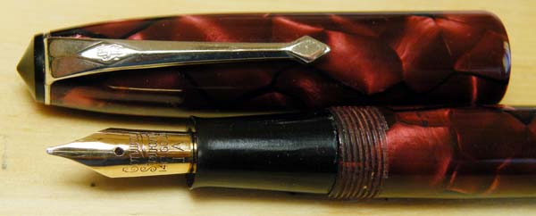 How do you know whether your pen is celluloid or casein? Dump it in a basin of water and wait for two hours. No! Really! Don’t do that! Supposedly, casein smells of formaldehyde whereas celluloid smells of camphor. Also, if you rub casein briskly, it gives off a milky smell. I have to say that these tests don’t work very well for me. If you have a brightly coloured post-war Burnham, chances are it’s casein. Several ranges of Conway Stewarts, including the 475, 15, 759 and several Dinkies and Dandies (by no means a comprehensive list!) contain casein models. If the colours are strong and the pattern appears to reflect light from the depths, chances are it’s casein. Against that, remember that even among Conway Stewarts, celluloid is much more common than casein. Perhaps the best answer is to treat all your Conway Stewarts and Burnhams as if they were casein. Then you’re safe!