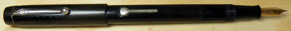 Though the name “Conway Stewart” is not imprinted on the barrel, the intertwined “CS” initials are stamped on the shoulder of the clip and the nib is a Conway Stewart one.
