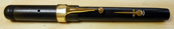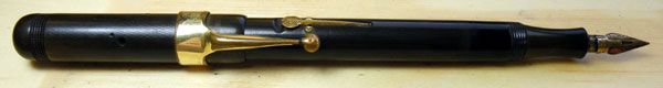 I wasn’t sure what it was, other than that it was a very old Conway Stewart. The faint imprint helped a little and further investigation showed it to be a 206. I can’t find a start-date for its manufacture but it was on sale for Christmas 1928 priced at 10/6d without a clip and 11/6d with a rolled gold clip. This one was evidently bought without a clip and an accommodation clip was later fitted. Here it is posted:
