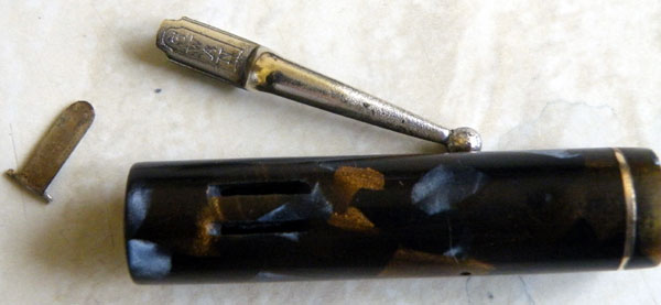 I love working on Swans because the quality is so good, and the hand-finished inner cap is just another example of that. To ensure proper clearance of the inside of the clip assembly, the craftsman has filed away a few strokes more, and you can see the file-marks there on the flat of the inner cap.