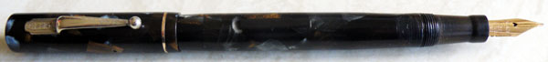 The pattern of this pen is very beautiful, with bronze and blue in different shades mixed with black. The colours are muted and there are quite large areas of each colour. Most unusual. I haven’t seen this pattern before.