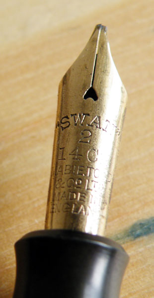 This one has a No2 oblique semi-flex stub, a very nice nib indeed. Throughout its history, Swan seemed to make a greater effort than other British manufacturers to supply customers with nibs that suited their writing style, hence the number of stubs, obliques and flexible nibs that turn up on Swan pens today.