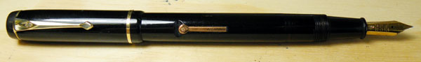 The Conway Stewart 286 had a long production run, from 1930 to 1945. For strict accuracy, one would have to say that it wasn’t quite the same pen throughout the whole period. There were a couple of redesigns. It was always the same type of pen, though, a quite large pen, in the middle of Conway Stewart’s price range, bearing a single narrow cap ring and a big No5 nib. It was always a big seller, probably the company’s biggest seller during the years it was in production. The 286s are well-made pens and they survive in large numbers. Of all the CS pens of that period, I find that these are the ones I have to do least remedial work on. Yes, there can be nib repair and replacement to be done, because people drop pens, but the main components survive better on this model than on most others. The lever, often a problem on Conway Stewarts, rarely is on the 286. It seems to be a little sturdier.