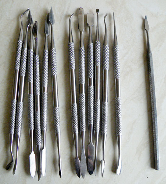 which, because they have a range of shapes, will, with persistence, get every last bit of sac. They’re sold either as dental picks or as modelling tools and, again, they’re inexpensive. The one on the right is a standard dental pick.