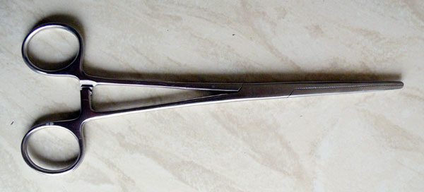 Most decayed sacs come out of the pen without any difficulty. Often, the sac is virtually whole, though ossified, and falls out of the barrel. Mostly, the sac has disintegrated into flakes and again, can be knocked out of the barrel. There are those, though, that have assumed the consistency of very tough chewing gum. It refuses to let go and if it moves at all, it goes deeper into the barrel. That’s where these handy forceps come in. They’re remarkably cheap and worth their weight in gold!