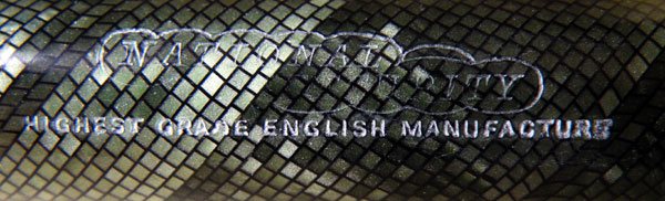 A well-made pen, quite substantial at 12.7cm capped, it is a handsome and striking pen. The arrow clip is held by a stepped collar and the nib is quite large and warranted 14ct. National Security imprints are usually shallow and therefore don’t wear well. They sometimes include their Lion & Pen trademark.