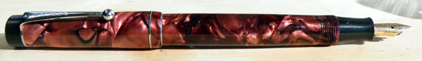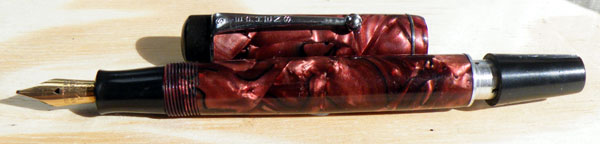 This is a 76, in the middle of the price range. The model numbers reflect the cost, for example the 56 cost five shillings and sixpence, the 76 seven shillings and sixpence, and the 106, which had gold trim instead of nickel, cost ten shillings and sixpence. Though I haven’t seen one, I believe there was also a 210 with three gold bands and a larger nib.