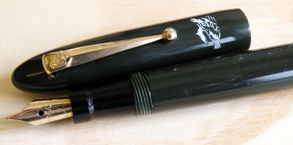 A Swan image is imprinted in white on the cap. It’s a bit more wild than the usual sedate Mabie Todd Swan – in fact it’s a little like a dragon!