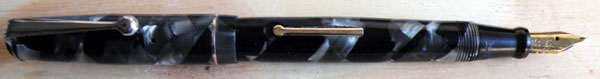 In the late 1930s Mabie Todd made a range of small pens with stepped clips – or rather, two ranges of pens, because there was the Swan SM range and the Blackbird BB range which were practically identical, except for imprints and nibs. The only other difference was that, so far as I know, the Swans were self-coloured or snake or lizard-skin and the Blackbirds were marbled.