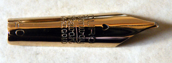 Not all Duro nibs are made equal, either. Most commonly seen is the Duro 40, but I’ve also seen Duro 20s and Duro 26s, and yet others that are Duros without any number. Most are long-tined, but high-shouldered and even oblique Duros exist.
