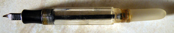 Here it is cleaned up a little. As you might expect, the clear barrel was the most difficult to clean and it took repeated applications of the ultrasonic cleaner together with overnight immersion in my Secret Cleaning Compound to get it nice and sparkly.