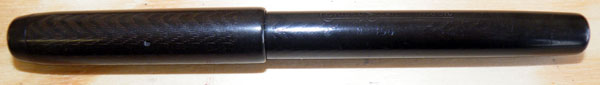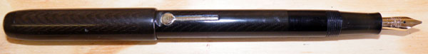 This black hard rubber Conway Stewart 356 has a wonderful soft shine from much handling. The 356 came out in 1932 and at three shillings and ninepence was probably the company’s cheapest full-size pen at the time. It was produced in some delightful colours but the company which bought this one settled for chased hard rubber.