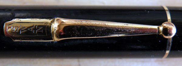 The ridges that were once on the turn-button to make rotating it easier have worn down, and there’s quite a bit of plating loss and even pitting on the clip. The pattern on the cap and barrel is still there, though, and the barrel imprint is nice and clear.