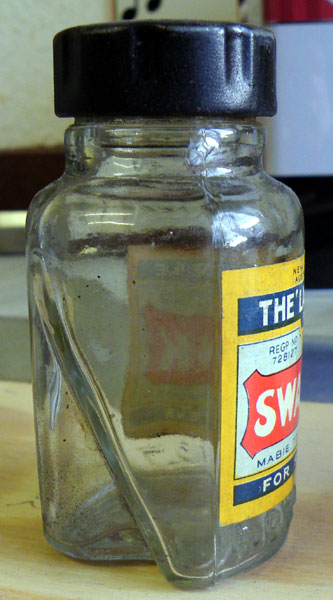 My guess, looking at the style of the case and the label on the bottle, would be that this dates to some time in the 1930s, but I’m no expert on these things. If anyone knows more, I’d be delighted to hear it.