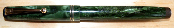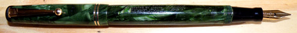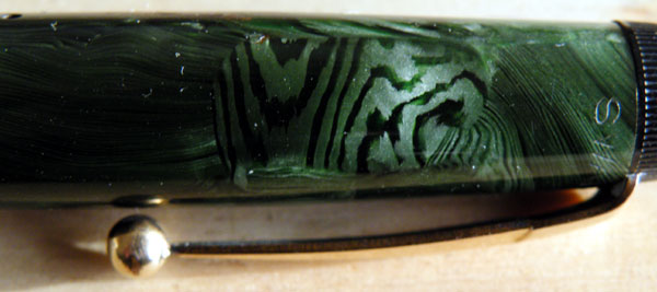 This pen, I suppose, must go under the general description “green marbled”, but if you think of what a Conway Stewart, Waterman or Burnham green marbled pen looks like, you appreciate how subtle and understated this pattern is.
