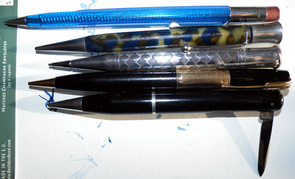 The pencil at the top is an offering from Scripto. It has no particular value but it’s colourful and practical. It looks quite similar to a wooden pencil, to my mind.