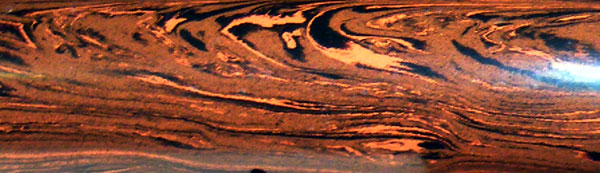 Excuse the flash photography. I had a long day despatching sold pens and restoring a few more, so I hadn’t the energy to set up lights tonight. The flash exaggerates the difference between the hard rubber in the blind cap and the cap, but the difference is really there. This pen was made from three different pieces of hard rubber, if you count the section too. The mottled rubber in the cap is especially beautiful: