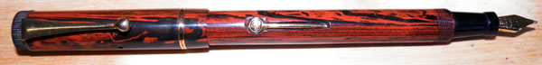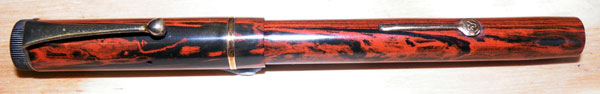Quite a few No-Name mottled hard rubber nineteen twenties and thirties pens have been coming my way recently. This is a Very Good Thing as despite their variations, these pens usually share the characteristic of being well made. Mottled hard rubber comes in wide variety of patterns from the wholly abstract to quite convincing woodgrain, knots and all. The intensity of the colours varies too, partly through oxidisation over time but also because each MHR mix is a little different.