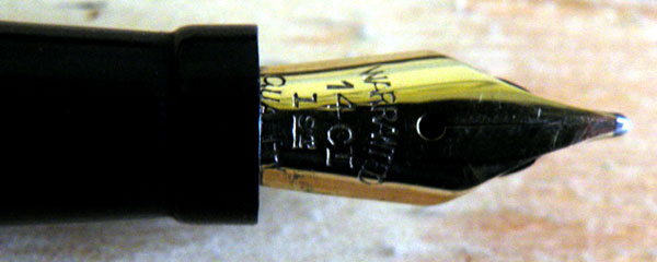 It’s always fun to try to spot resemblances that will enable us to identify the pen’s manufacturer. It’s a pretty fruitless exercise. That handsomely stepped section says “Burnham” to me, but who knows? The small warranted nib is a delight, being both broad and flexible.