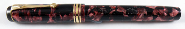 I tried the new set-up on this handsome marbled plum/black Conway Stewart 55 and its Duro nib. The 55 and to some degree its smaller cousin the 388 seem to be pens in transition, different from their predecessors but having not yet made the decisive jump that was to come, to the baguette-shaped pens of the late forties and fifties. The 55 is less streamlined than its predecessor the 45, making it appear shorter and quite chunky, though actually they are the same length and diameter. It’s a pen designed to impress, and it does. The narrow/medium/narrow cap bands signal that this is an expensive pen, and if you don’t get the message, the big Duro nib is there to emphasise it
