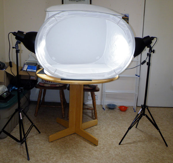 There have been less posts this last week or two. Mea culpa, but I plead in mitigation that life has been thoroughly hectic and every little niggling thing that takes forever to fix went wrong in that time. While I’m doing the sackcloth and ashes bit, you may have noticed that the standard of my photos has dropped from the just-about-acceptable to the frankly awful. Wherever it’s possible I use daylight, because it gives the truest image. Trouble is, here in the Northern Highlands daylight can be a scarce commodity for a few months either side of the autumnal equinox, and this year especially the cloud cover has come down like the lid on a shoe box. I did have a light-box but it was a pain to set up, and the best my – perhaps economical – lamps could emit was a weak and sickly light. So, weary with hunting for light I went out and bought some.