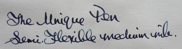 There are good pens that will never appeal to collectors. The Dickinson Croxley is such a pen; well-made, an excellent writer, but because there is such a paucity of models it would form one of the world’s smaller collections. Croxleys, therefore, sell well as writers’ pens. Unique on the other hand, in its much longer history, produced a great many models and in its later days used some very fine plastic patterns. I would guess you could fill a display case or two with Uniques. The writing sample above speaks for itself. It’s a writer’s pen, too. If you want to snag an excellent and decorative British pen for very little money, get yourself a Unique. Buy with caution, I hasten to add, because some of their cheaper pens truly are shoddy, but there are fine bargains to be had.