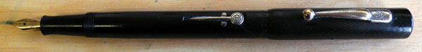I have an especial liking for Conway Stewarts of the early thirties. Domed cap, flanged lever, fixed clip, deep engine chasing; it adds up to what I see as the finest style of pen that Conway Stewart ever made. This, for me, is a better pen than all their glories of the forties or their colourful beauties of the fifties and sixties. You may disagree with me, of course, and I expect that most people will, but that’s how I see it. It’s just the right collection of attributes that adds up to be harmonious design. Like some Swans of the same period, it’s a perfect pen, not to be excelled.