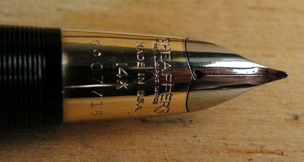 Anyway, soon thereafter the Tuckaway became unisex and grew a little clip. I’m informed that this truncated clip is called a clasp. So there. After that it went through the full gamut of Sheaffer options – lever filler, Vac-Fil, Touchdown, open nib and triumph.