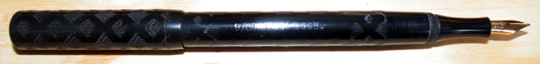 It’s a large pen in all its dimensions; quite chunky and nearly 17cm posted. One consequence of that is that you wouldn’t be refilling very often. The black hard rubber hasn’t faded at all and the chasing is as crisp and strong as it was on the day this pen was made.