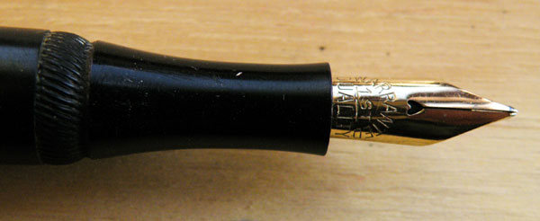 When was that day? Well, it’s a slip cap, so likely to be before 1915. The chasing is of a pattern that you don’t see on later pens. The very concave section is an early feature too. I suspect that 10/6 is a model number rather than a price!