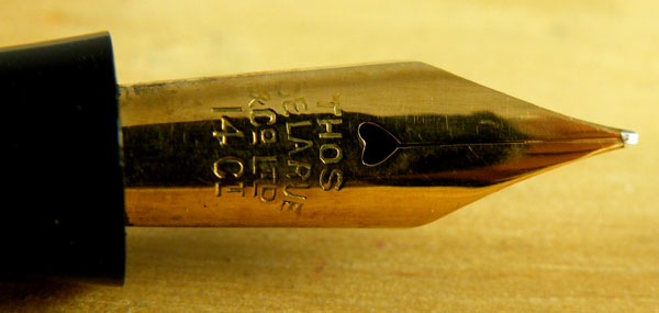 Nib stamps are interesting. The best, I think, are on Sheaffers – deeply imprinted, clear and artistically laid out. Swans are good too. Conway Stewarts have nice cursive writing but they’re stamped quite shallow, and old ones can be very faint. De La Rues, including Onotos, often have a messy and indistinct stamp.