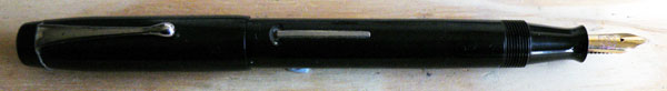 This was a wartime pen, one of three, along with the Savoy and the Regent, that Lang Pen Co. Ltd. were licensed by the government to make. At the same time Curzons Ltd. (virtually Langs by another name) was licensed to make two Summit models. Though there doubtless was some shortage of materials, manufacturing capacity was in even shorter supply, and most pen companies were being restricted to economical models that were efficient to turn out, so that the rest of their factory space and equipment could be devoted to the manufacture and assembly of such things as aircraft instruments, engine parts and munitions.