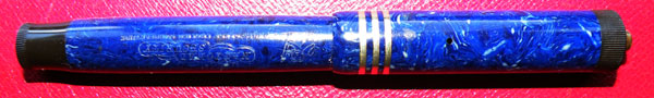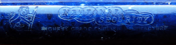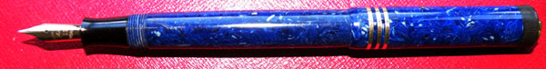 There was a period during which National Security’s pens were audacious copies of the Parker Duofold range and this pen, which has no model number, is an example. It’s tempting to date the pen by the Duofold model it most closely resembles. Not streamlined? 3 cap rings? That’ll be 1927, then. That may be too simplistic and it could well be the case that these imitations trail well behind the originals. Be that as it may, this beautiful Lapis Lazuli pen could easily be mistaken at first glance, and the second one too, for a prestigious Lady Duofold, which doubtless was the company’s intention. Imitation may be the finest form of flattery but it also sells pens.
