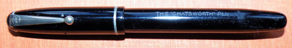 It’s easily identified. It’s the one with the sunburst logo on the clip and a warranted nib that has “TDLR & Co Ltd” near the section. (As an aside, a sunburst logo on the clip always identifies De La Rue, but not on the lever. Their ubiquity suggests that these sunburst levers were mass-produced parts available to anyone who wanted to buy them.) This Chatsworth pen is a re-badged and slightly cut down version of the De La Rue pen and the quality is very good despite the slightly smaller size and the smaller nib.