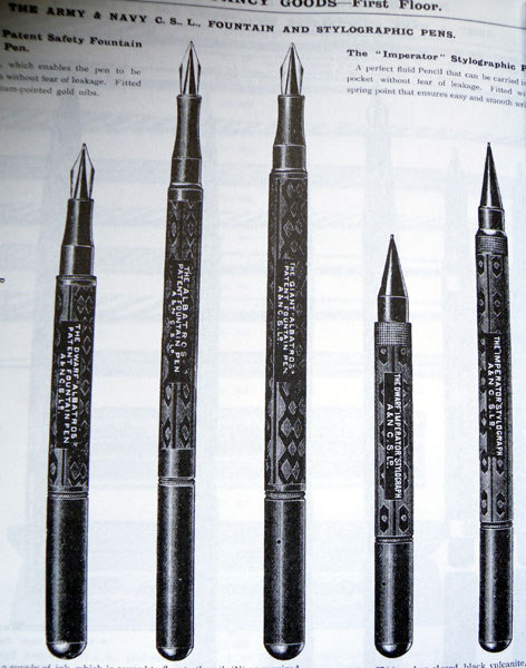 I picked up this Army & Navy Stores Stationery Department catalogue from 1907 recently, mostly because I knew there would be pens in it – and there were.