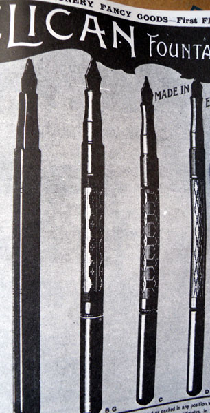 Here are some of De La Rue’s “Pelican” eyedropper pens. Always ahead of the field, these pens had a cut-off valve which enabled them to be carried without risk of leaking.