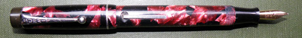This rose marbled pattern plastic is, I think, unique to Summit. I’ve seen somewhat similar patterns on Stephens pens and on some Parkettes, but they don’t have the intensity of this colour. It almost glows in the dark like the slumbering embers of a rested fire.