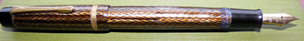 I have yet to restore this pen, but it’s a lovely piece as it is. The clip and cap ring are patterned and the mount for the button is made of clear plastic. Searching for Rubinette didn’t help me much. It’s a variety of apple and there’s a Rubinette Way in Winchester. Oh, and it’s a seldom-used synonym for “ruby”. Nothing about pens.