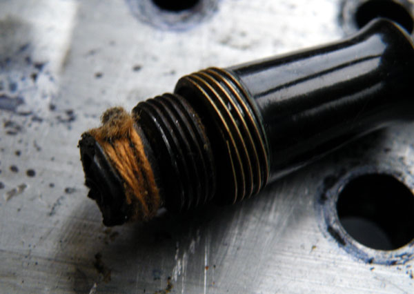 What d’you think about that? That’s not a repair you see very often! The surprising thing is that the piece of rough cord was actually pretty tightly tied on there. Seems that the sac held ink. Sadly, the ink that was used had more of the characteristics of gloss paint, so cleaning the section, feed and nib is still ongoing.