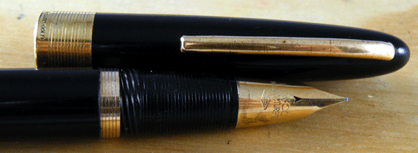 So how do you classify this pen? Given the build quality it’s far from being a cheap knock-off. There was no suggestion that this pen was a Sheaffer, so it isn’t a forgery. It is, in a sense, an homage and there can be no doubt that it’s a copy, too. So what’s the difference between this pen and all the – for instance – Duofold copies that appeared under a variety of names in the twenties and thirties? Not much, one might say, except that perhaps the concept of the Duofold was less unique and identifiable than that of the Sheaffer Balance 1000. Also, Sheaffer was renowned for being hair-trigger litigious.