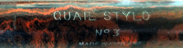 If there is no manufacturer marks, it is unlikely that you’ll find out much detail about the pen, unless the marks relate to a specific place. I have a plain black Conway Stewart pen that just says “Lanes Library Herne Bay” and as I live in Herne Bay, I knew that I could find out the history behind it. I know of other examples, such as “The Perth Garage Pen” which will be equally as easy to find out about, and there are others attributable to Harrords, Selfridges and other department stores. As for your pen, the only possible connection I can come up with, and this is pure speculation that needs some following up to see if it is founded, is that there is a golf course in the USA called Quail Hollow, and a style would make a much better golf card marking pen than a standard fountain pen.