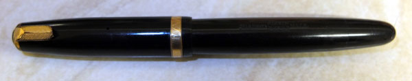 This is my latest everyday user.  It’s a rather shabby Duofold AF and yes, somebody broke the clip and no, I haven’t got around to replacing it.  The pen writes just as well with a broken clip.  It’s made from that strange plastic that Parker used for the AFs.  It looks black until you put it under a strong light, then it’s green.