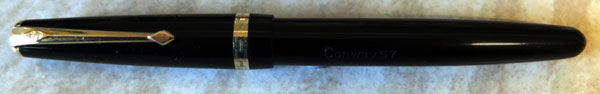 One other thing about this pen is that it’s a bit of stylistic grab-bag. It’s a long, tapering pen like the 85L but it shows pretensions to something more modern. The nib is fully exposed. Why then does it have a long hood – which serves no practical purpose – rather than a normal section? I think it shows two things: that Conway Stewart’s designers knew that the public wanted something new, but also that they didn’t have the money to tool up for a completely new pen, so they made this cheerless compromise.