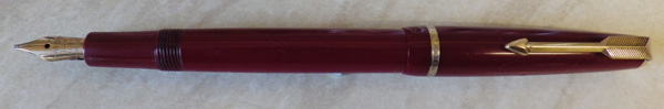 I usually avoid the smaller nineteen-fifties/sixties English Parkers. They’re excellent pens but the market for them is poor. This one’s a Slimfold, dating back to around 1962 and it looks like this one has done a lot of work since then. The gold plating’s still good, though. I suspect there may have been a cap swap at some time, though, because the cap seems a little darker than the barrel. The imprint is just discernible and no more. We’re not going to be exclaiming “Minty!” (awful term) or claiming New Old Stock over this one. No, it’s what it appears to be, someone’s old workhorse that has ended up on my bench.