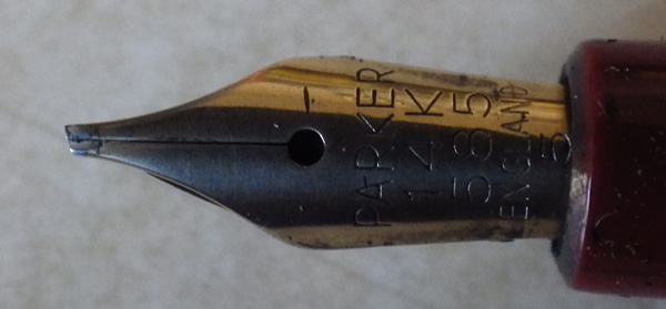 The charm of this pen, though, is the nib. It’s an oblique stub. Parker didn’t do many of these but when they did, they gave them a sharp edge like an italic. This one’s a beauty. I have another with an oblique nib, an equally well-used Junior that is my current every-day user.