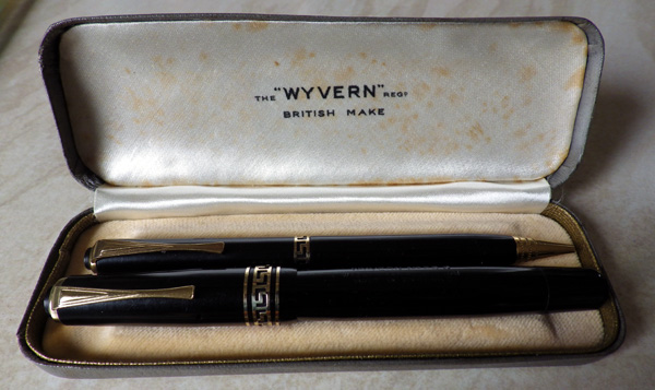 This is a good set, tastefully presented, and it shows that soon after the war, Wyvern was more than holding its own. Indeed, judging by the number of post-war Wyverns I see, I think they must have been doing rather well until the ballpoint came along and dealt a killer blow to fountain pen production by this company, like many others.
