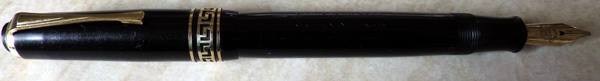 This one’s quite a large, thick pen and the Greek Key band sets it above the run-of-the-mill pens of the time. The time, I would guess, is about 1948, going by the clip, and I expect that this pen and pencil set in their hard case would have been quite pricey. 60Cs are usually lever fillers but this one’s a button filler.