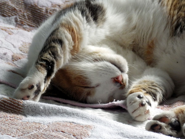 As I was so busy I asked my assistant for assistance. She replied that she couldn’t do much with the tools with no thumbs and re-saccing’s not the job for her either, not with those long, sharp, latex-puncturing claws. “You’ve got my moral support, though, boss,“ she said, “but keep the noise down ’cause it’s nap time, m’kay?”