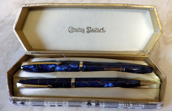 I wrote about the 85L before, back here: http://wp.me/p17T6K-cI, where I suggest that the 85L is a successor more to the 84 than the 85. Be that as it may, the 85L is a pen that stands out among the other models of its time (late fifties early sixties). It a little longer and slightly more slender than the other Conway Stewart pens of the period and it comes in some outstanding colour patterns like this bright blue with gold veins. Judging by the numbers that turn up nowadays it was a very popular pen back in the day and it remains so with buyers today.