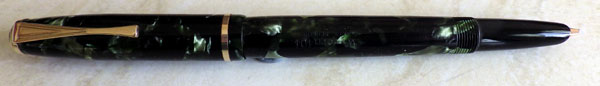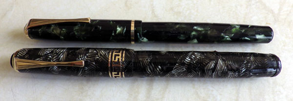 The No 60C is a bit of a puzzle. It appears with different levels of trim and, indeed, as a completely different pen from this one, more slender and cheaper-looking. This version, with its Greek Key cap ring and cowled clip is doubtless quite high in the range and probably post-war.